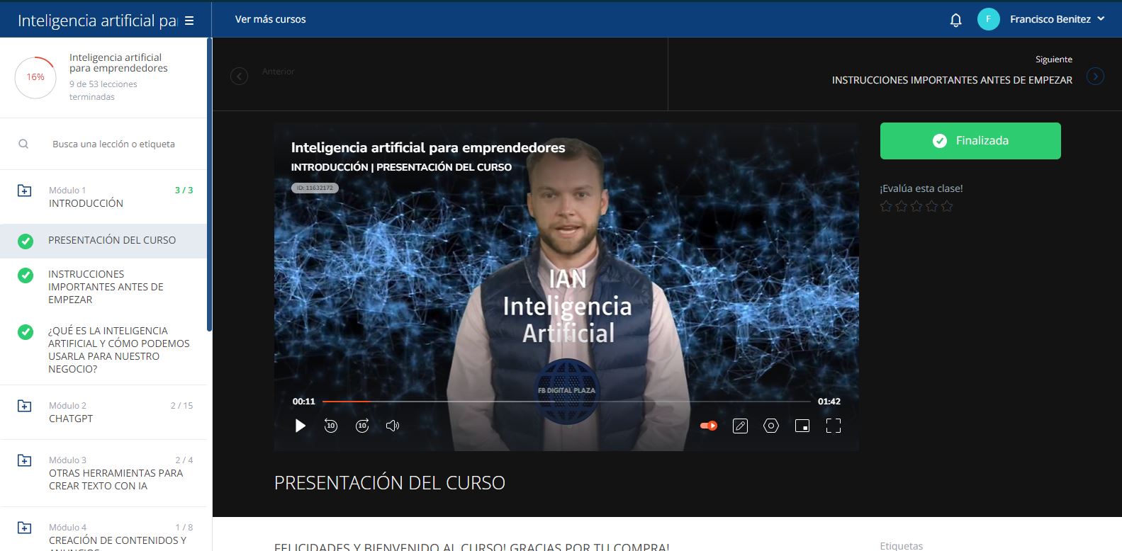 Al finalizar este curso, recibirás un certificado de finalización que podrás compartir en tus redes sociales para demostrar tus habilidades y conocimientos en el campo de la Inteligencia artificial aplicado al marketing y las ventas. Con este certificado, podrás demostrar a futuros empleadores o clientes que estás comprometido en mejorar tus habilidades y conocimientos para brindar un mejor servicio.